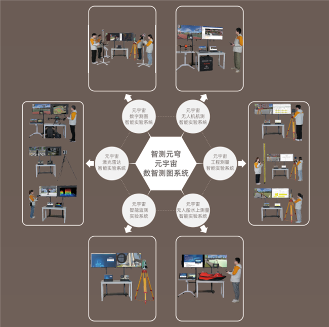 此外,南方测绘还将与院校教学特色深度融合,可根据院校需求定制化搭建实训实验室,如北斗室内外定位导航实验室、智慧水利数字孪生实践教学中心、空天地一体无人机虚拟仿真实验室等,为院校打造特色化、专业化的测绘实训教学平台。