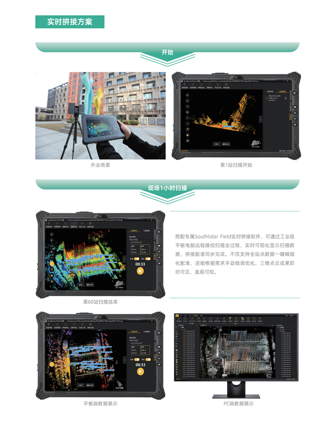 SPL系列扫描速度最高达200万点/秒,单站最快16s,内业数据一键自动拼接,无需人工干预,整体作业效率大幅度提升,省时省力又省心。