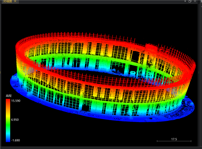 选用 SPL系列扫描仪,针对体育场超大跨度、曲面异形的幕墙骨架开展全维度扫描,无惧复杂异形结构,完整还原骨架三维空间形态、节点连接等核心数据;通过 SouthLidar Pro 软件完成多站点云自动拼接、精准配准,生成完整的幕墙骨架高精度点云模型。